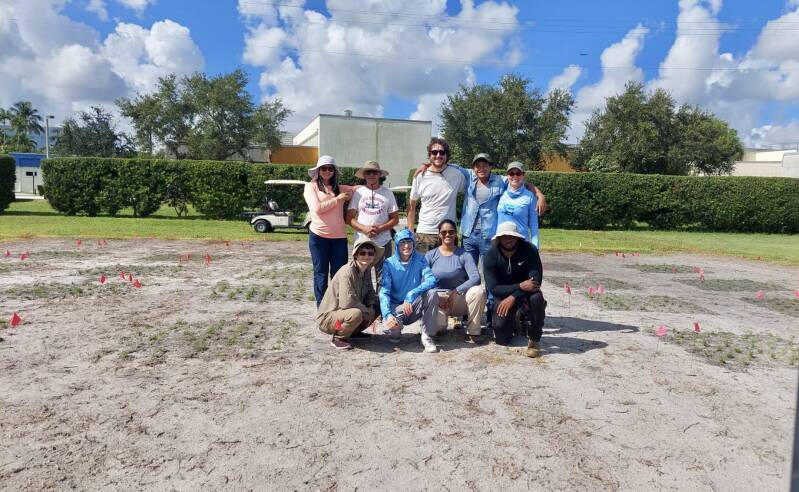 Marco e il suo team dopo, che hanno piantato l’NTEP di seashore a FLREC il 26 giugno