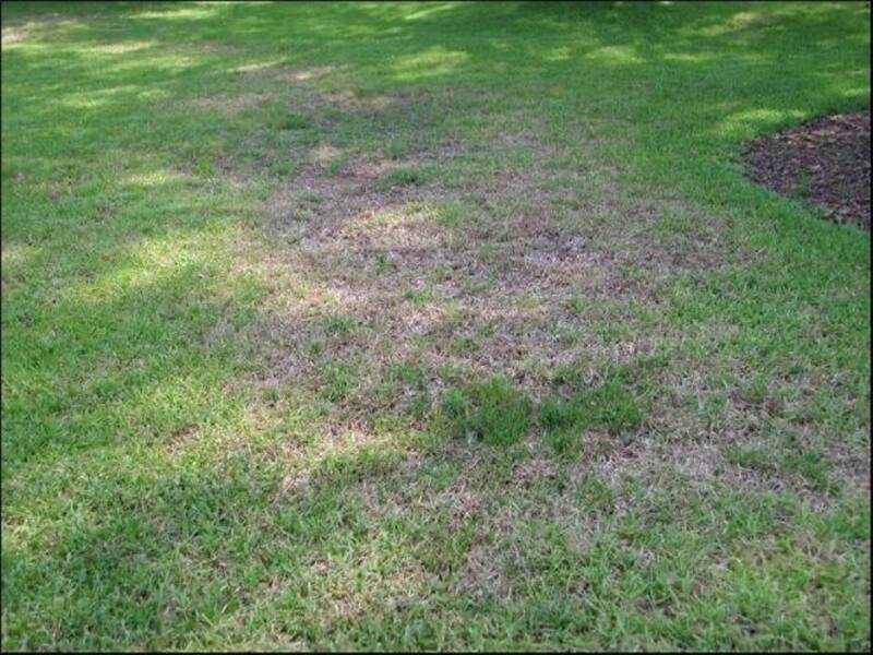 Figura 10. Segni di danno da nematodi nell'erba di St. Augustine.